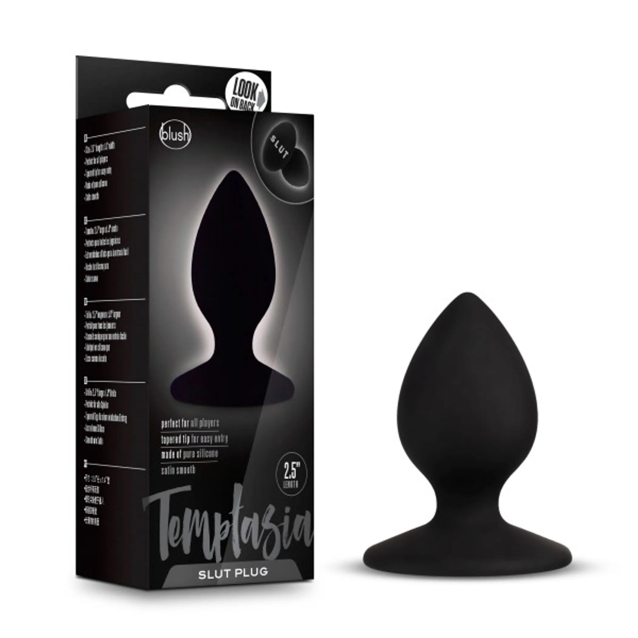 Temptasia Slut Plug Black from Blush Novelties. Erotic base includes an expressive message. Easy use....