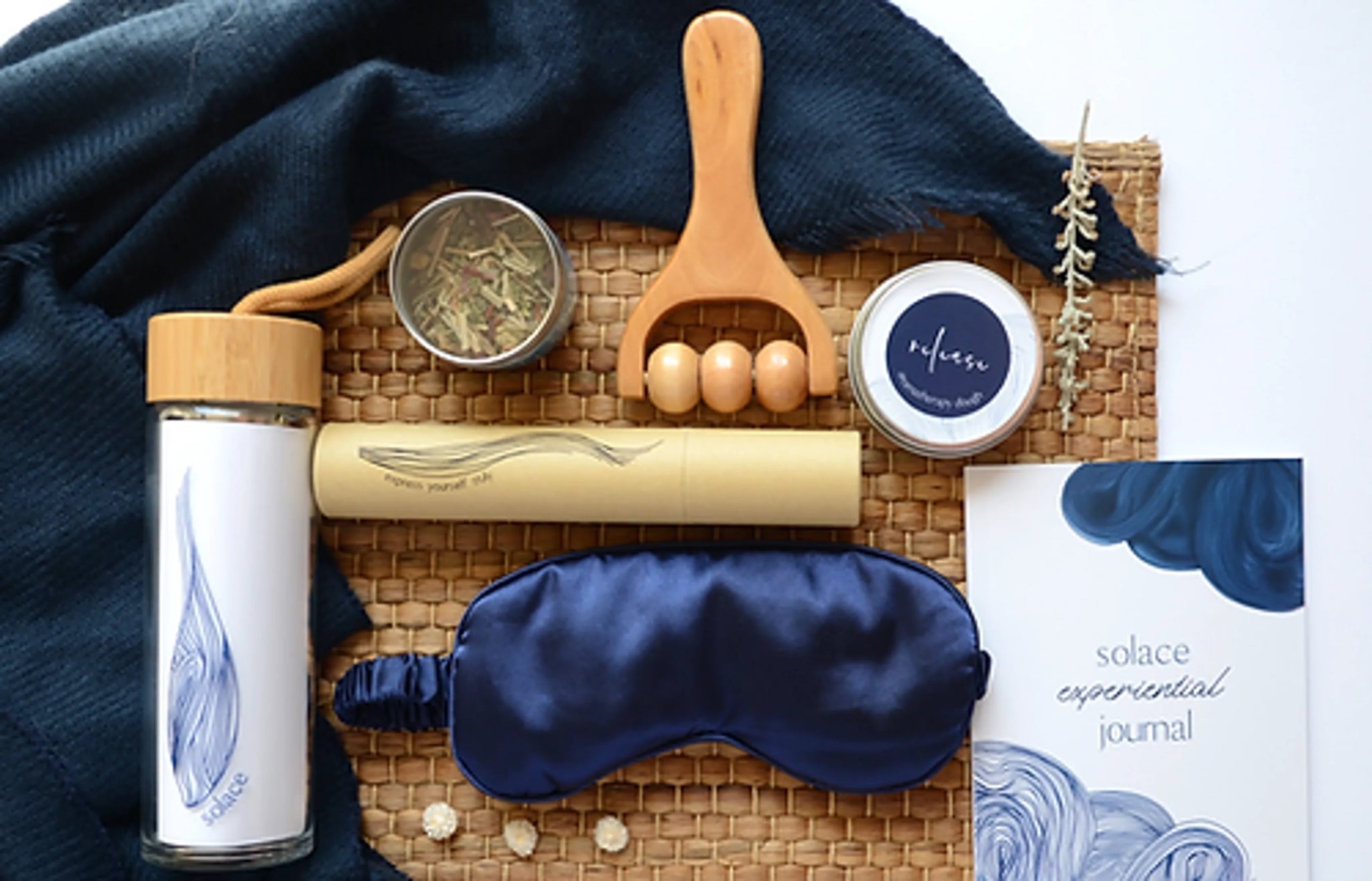 Calming Collection Contents: Midnight Blue Cashmere Blanket Scarf Solace Experiential Journal Coloring Book Set Of...