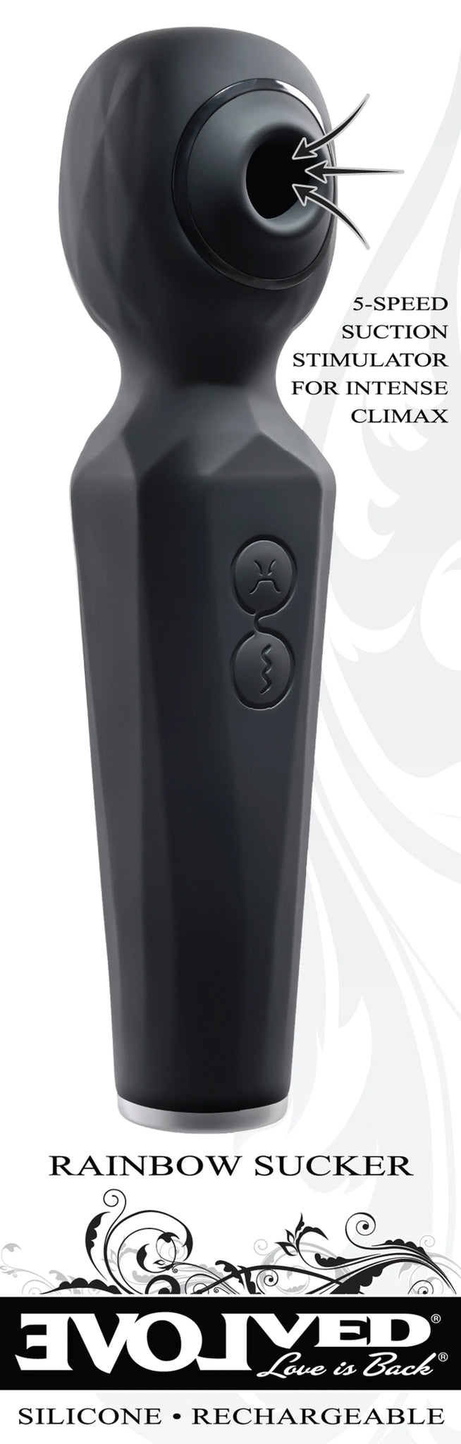 Evolved Rainbow Sucker Wand Vibrator. Experience a unique pleasure combination with this dual function wand...